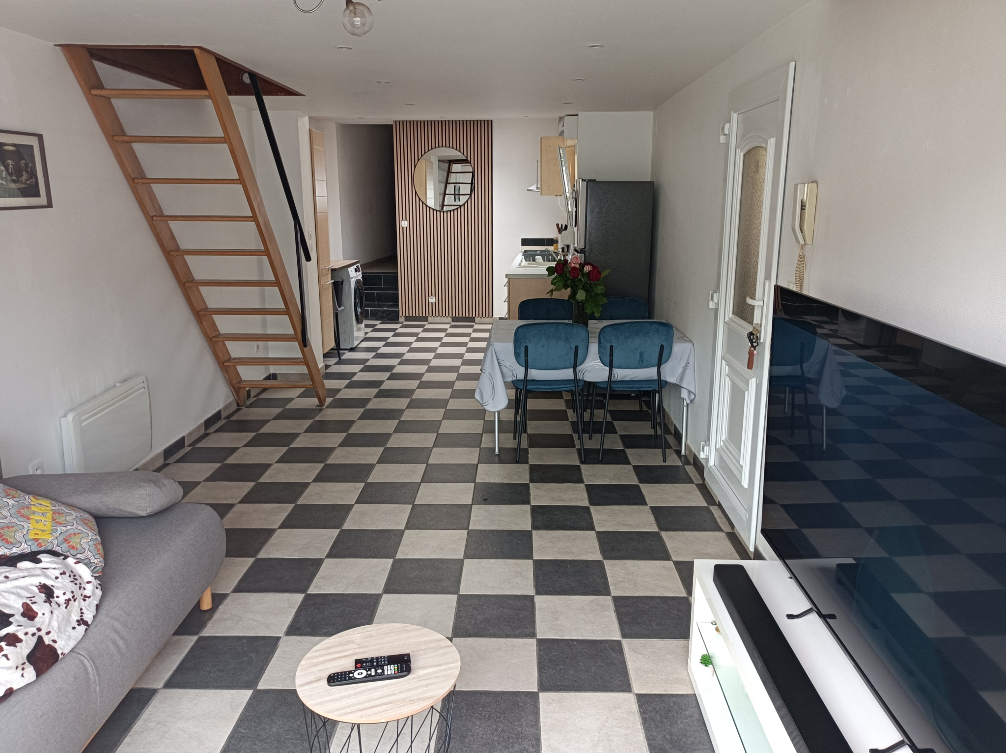 AU COEUR Appartement au Rez de Chaussée en Duplex avec Terrasse - Rdc Pièce de Vie avec Cuisine Aménagée Equipée (hotte, table de cuisson, four, réfrigérateur) - Dégagement distribuant un Débarras - 1 Chambre plus Salle de Douche avec Wc (idéal seniors) - Etage Palier - 1 Chambre et Espace Dressing - Loyer 700 € + 50 € en Provision sur Charges (eau + communs) - FIN DE PREAVIS AU 30 JUIN 2026 (peut être disponible) - En supplément état des lieux réalisé par les soins d'un Commissaire de Justice
