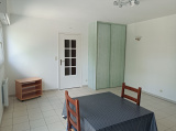 STUDIO situé au 1er étage d'un Immeuble sans Ascenseur - Hall avec Placard - Pièce de Jour/Nuit avec Cuisine AE (hotte, table de cuisson, four, réfrigérateur, micro-ondes) plus Placard - Salle de Douche/Meuble Vasque et Wc séparé