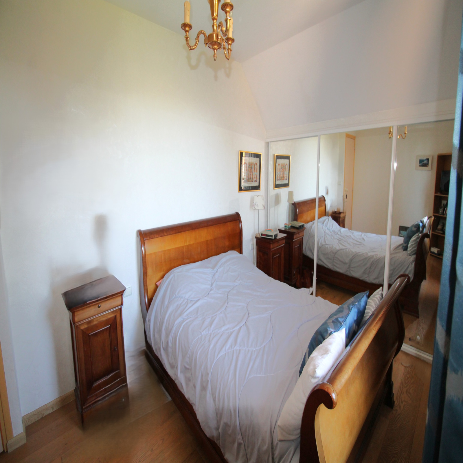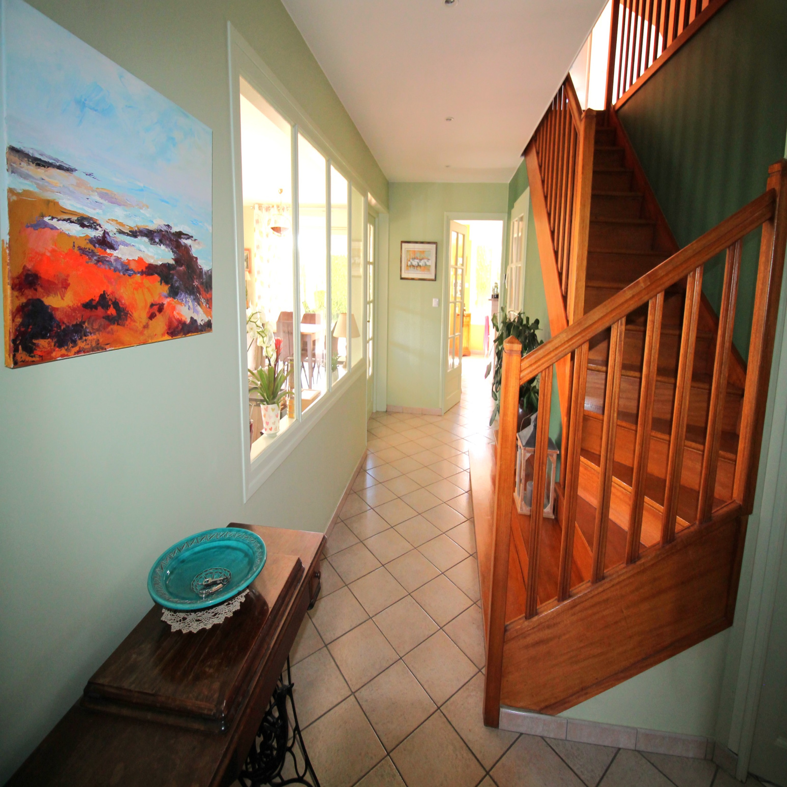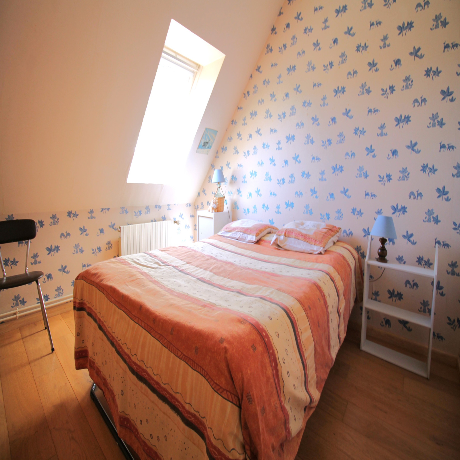 À l’étage, l’espace nuit se compose de cinq chambres confortables ainsi que d’une grande salle de bain équipée d’une baignoire, d’une douche, de rangements et de deux vasques.