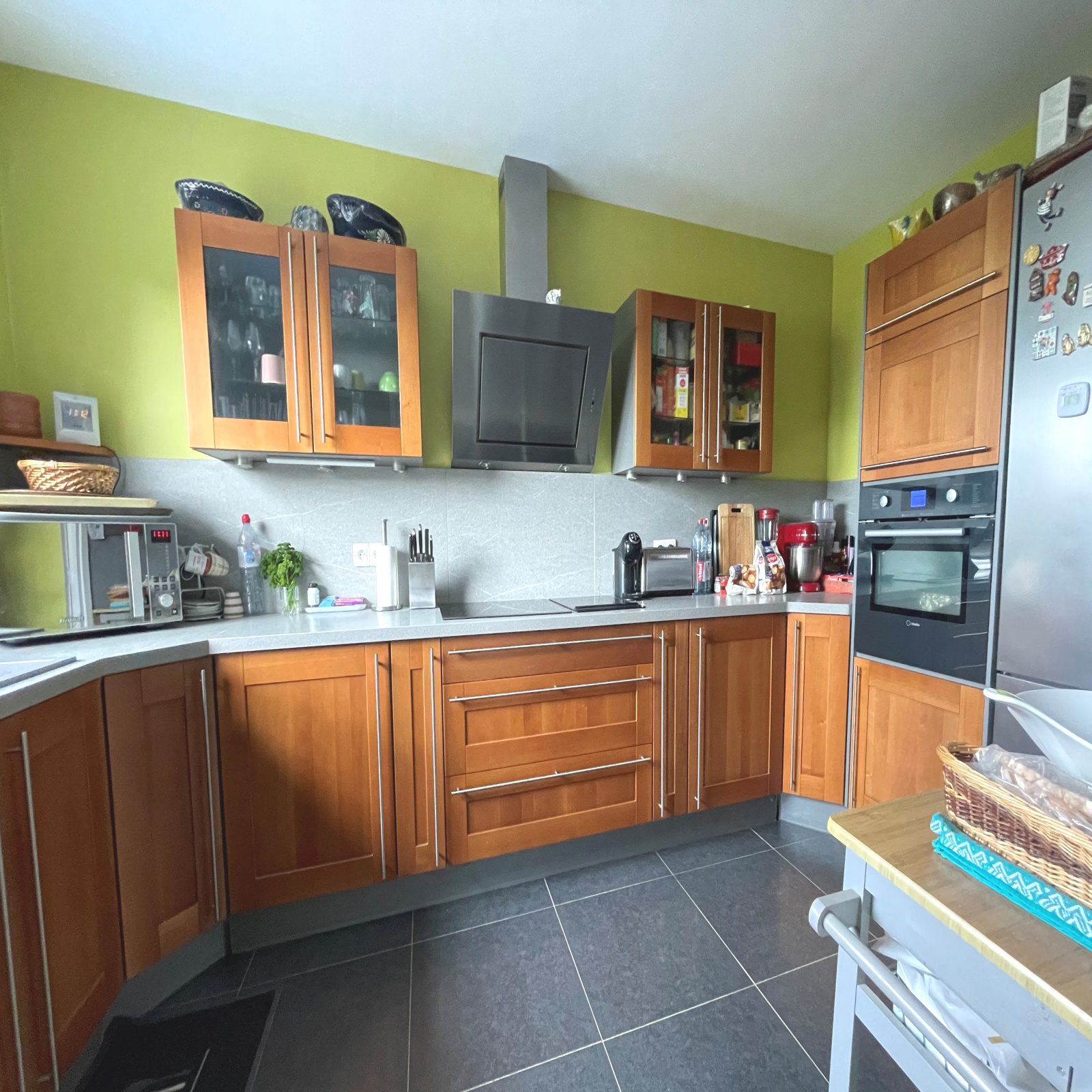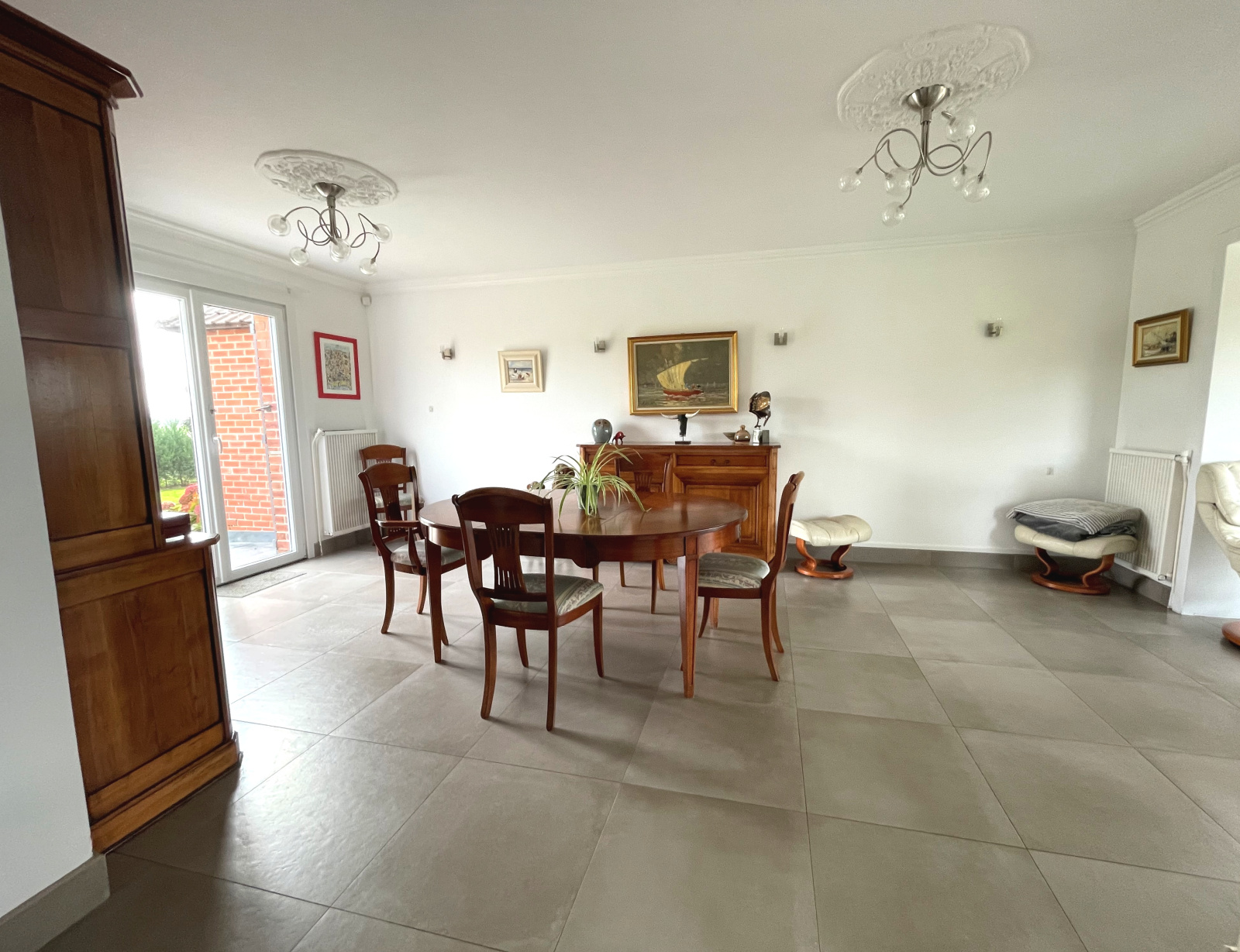 Elle séduit dès l'entrée par ses beaux volumes et sa luminosité. Le vaste salon séjour de 54 m² offre un espace de vie chaleureux, idéal pour recevoir. Vous apprécierez également sa cuisine aménagée et équipée haut de gamme, son bureau fonctionnel et ses toilettes en rez de chaussée.