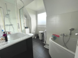 A l'étage, le palier dessert 3 chambres et une salle de bains avec baignoire, douche et wc.