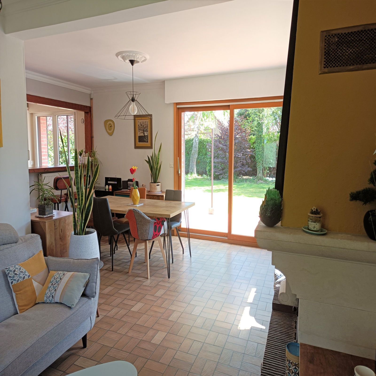 STEENVOORDE Dans Secteur Privilégié et Calme Maison Individuelle des années 1980 sur une Parcelle de 678 m² se compose d'un Hall d'Entrée, Séjour agrémenté d'un Insert au Bois ouvert sur une Cuisine Aménagée Equipée donnant tous les deux sur le Jardin arboré et d'une Salle de Douche avec Meuble Vasque au Rez de Chaussée - Le Palier avec un accés aux Combles distribue 2 Chambres, un Bureau, une Salle d'Eau - Un Garage attenant avec accés direct dans la maison complète ce bien et le Plus pour un Confort de Vie ce Bien est à 2 pas de l'A25, d'Etablissements Scolaires et de Commerces - REF 5739 - Classe Energie D