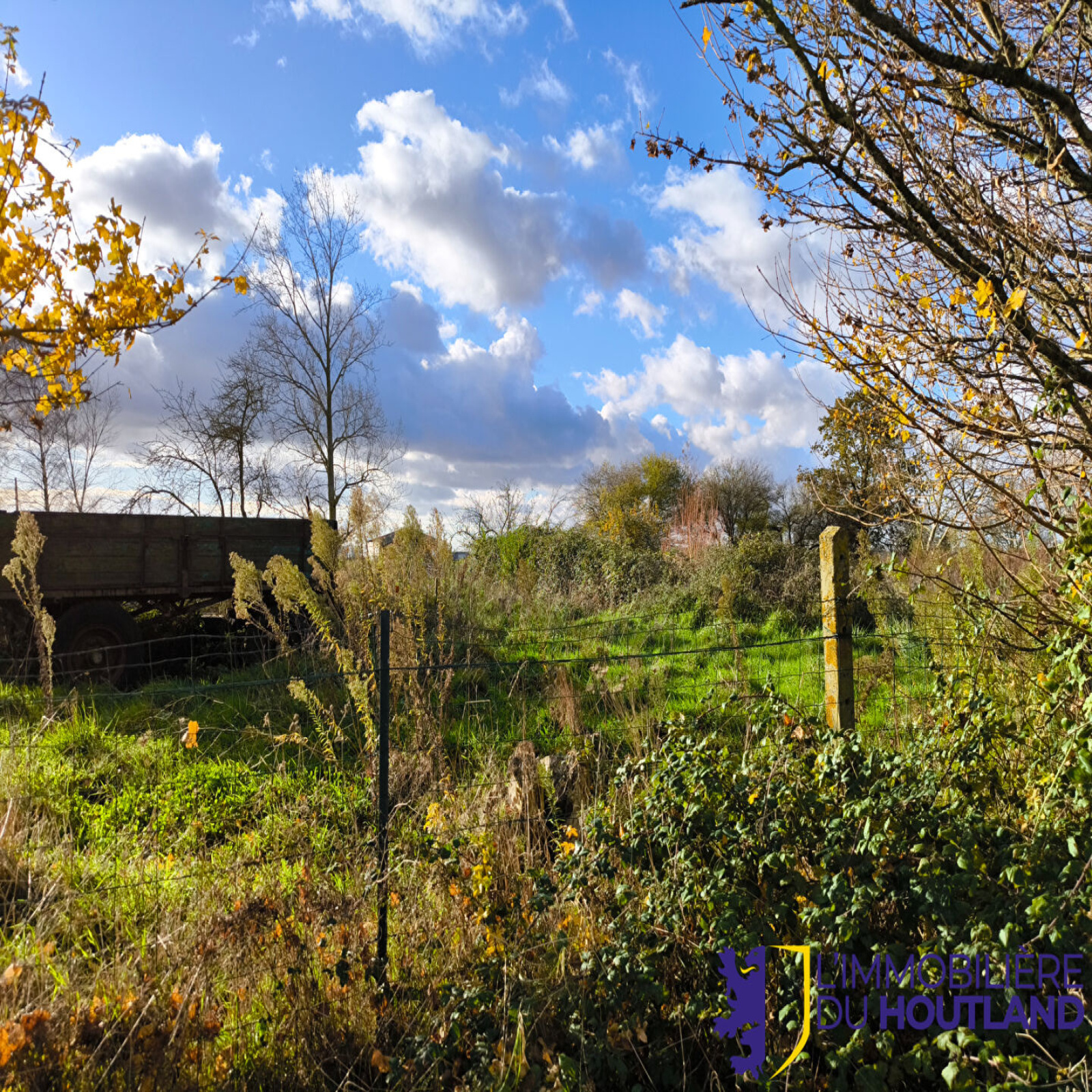 EXCLUSIVITE Immobilière du Houtland : Située à 10 mn de Bergues, dans un village paisible : 1 parcelle de terrain de 4 714 m² de superficie, sur une façade de 48m, dont 2 524 m² constructibles, bornée, partiellement viabilisée Exposition sud-ouest, avec vue sur la campagne environnante Prix : 174 000 €uros, frais d'agence inclus Pour toute information ou visite, contacter Pascal SCHIETSE, Tél. 06 18 47 54 05 pascal.schietse@immoduhoutland.com R.S.A.C. Dunkerque 901 818 039