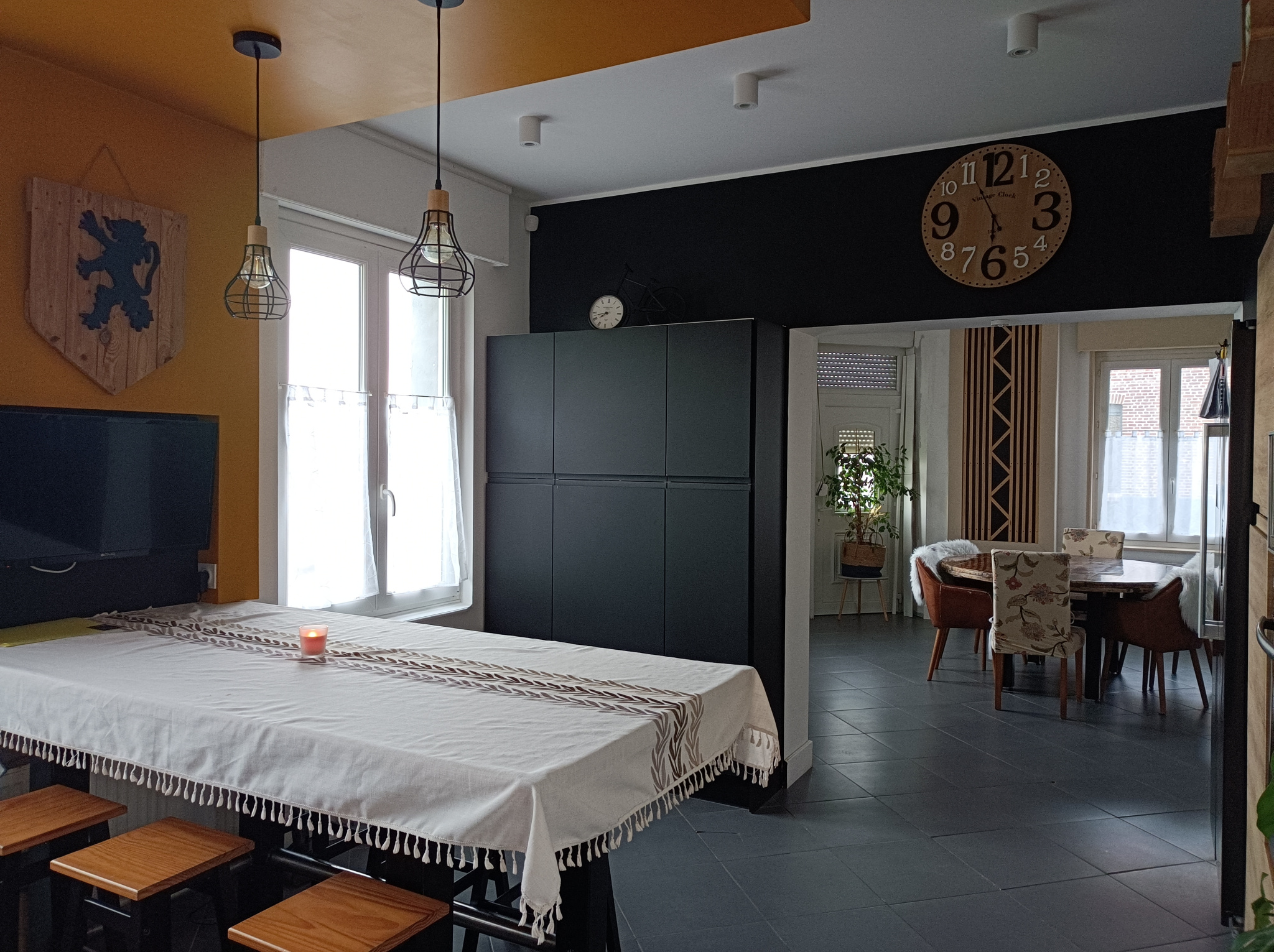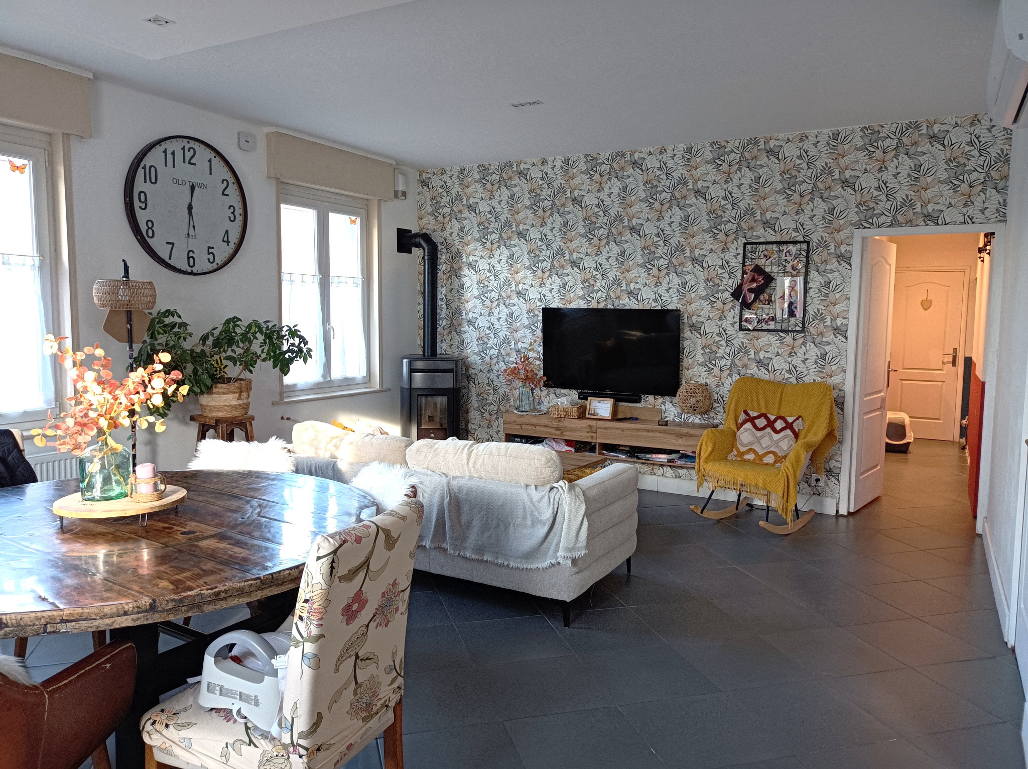 NOORDPEENE Au Pied de Cassel Flamande Semi Individuelle sur un Terrain sans Vis à Vis avec Terrasse offrant 4 Belles Chambres dont 2 avec Espace Dressing au Rez de Chaussée ainsi que la Salle de Bains composée d'une Double Vasque, Douche plus Baignoire - Le Séjour lumineux agrémenté d'un Poêle à Pellets est ouvert sur la Cuisine Aménagée Equipée donnant accès à l'Etage dont le Palier fait office de Bureau et une Pièce reste disponible pour y aménager des Sanitaires - La maison est chauffée au Gaz de Ville et possède également une Climatisation Réversible - De Nombreux Rangements, une Cave et un très Grand Garage complètent ce Bien se situant à 5 mns d'une Gare.